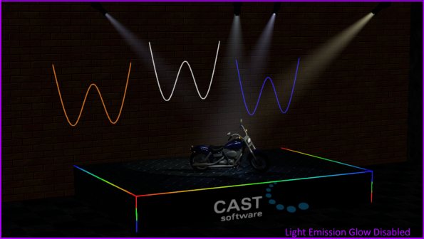 Creates a glow effect from objects for which Light Emission has been enabled to simulate light emitting from light boxes, projection screens, etc.