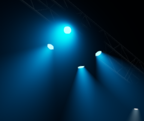 A visualization with Source Disc Bloom enabled. There appears a slight bloom or halo of blue light around the Fixtures' Source Disc. |