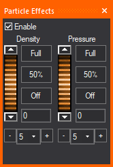 Use the Particle Effects tool to control particle effects simulation from particle generator machines inserted from the Particle System in the Library Browser. WYSIWYG provides small, medium, and large units for each smoke and flame machines from the Library Browser.