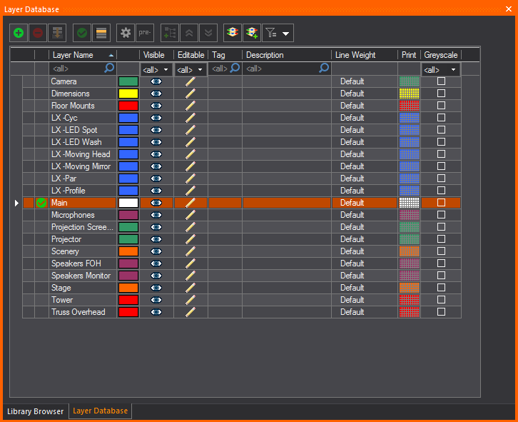 in the Layer Database window. The
