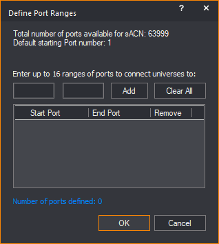 up to 16 ranges of ports to connect universes to, enter the