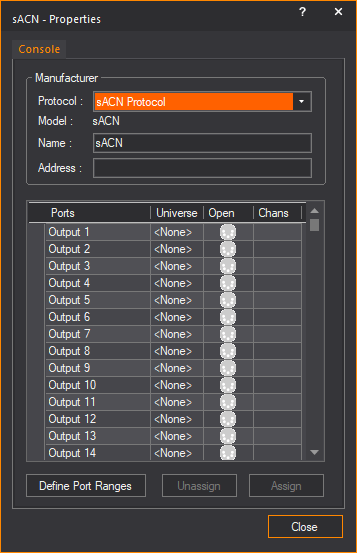 Port Ranges button will only be enabled if Art-Net, sACN, or grandMA3